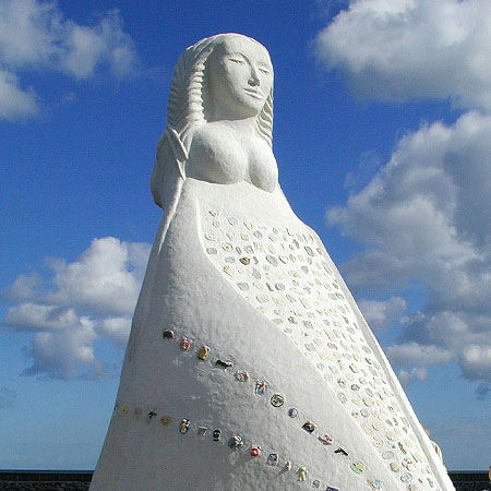 雕塑的防護(hù)通過近900位孩子們幫助雕塑師來完成。每個(gè)孩子在雕塑中加入了一個(gè)小的陶瓷或玻璃圖形。有的在衣服上,有的在身體上,就像美人魚的鱗片。